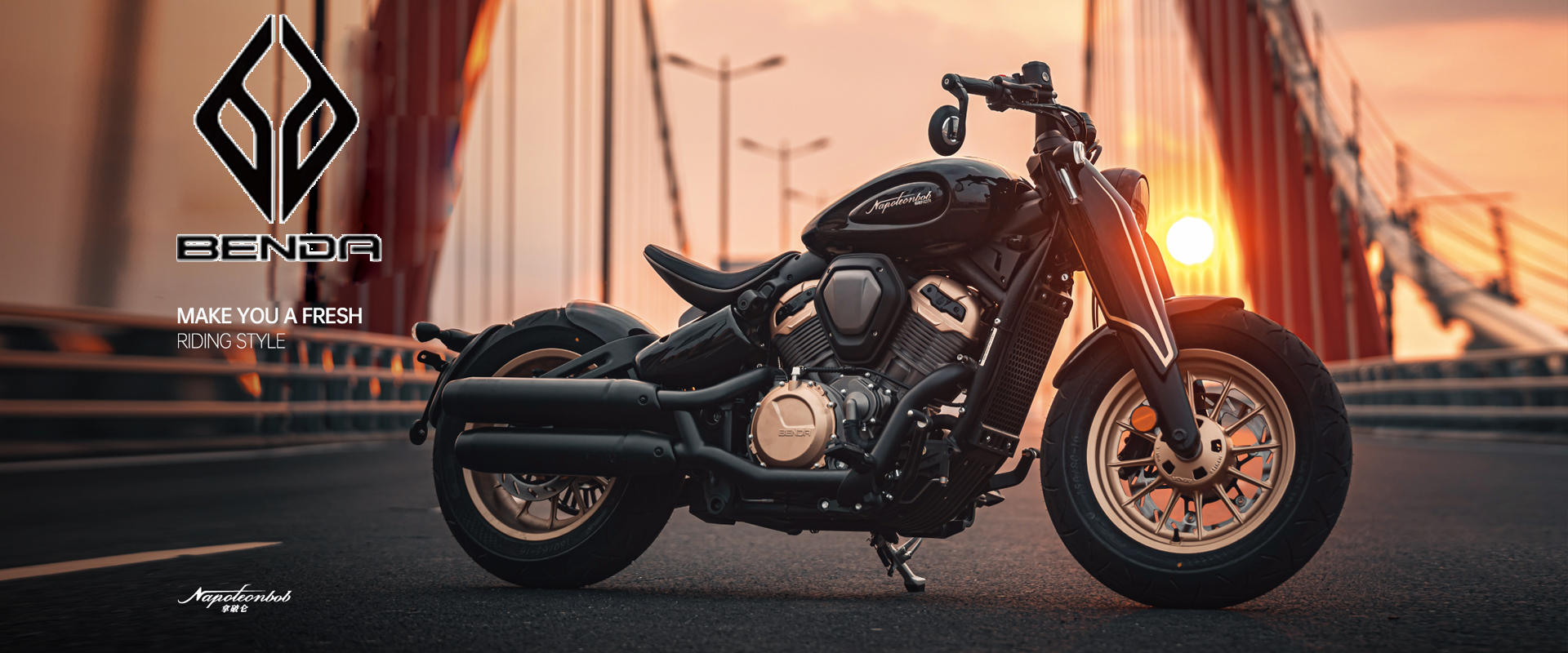 "Benda Napoleon Bobber 500 V2: The Future Revs", một bước ngoặt mang tính cách mạng trong quá trình phát triển xe máy. Mẫu xe này là hiện thân thuần túy của tâm hồn và phong cách bobber, với những nét độc đáo giúp xe trở nên khác biệt trong phân khúc của mình. Hiện dòng xe siêu phẩm này được phân phối tại Đà Nẵng